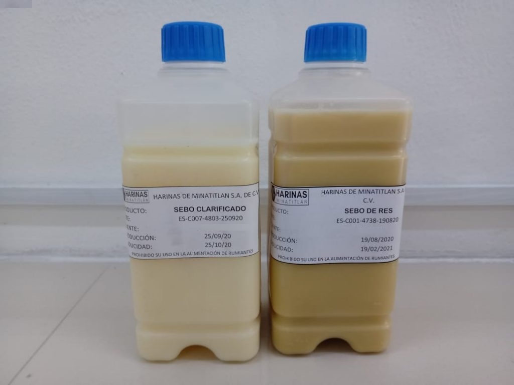 Harina y sebo utilizados en la industria de alimentos para mascotas y cosmética.